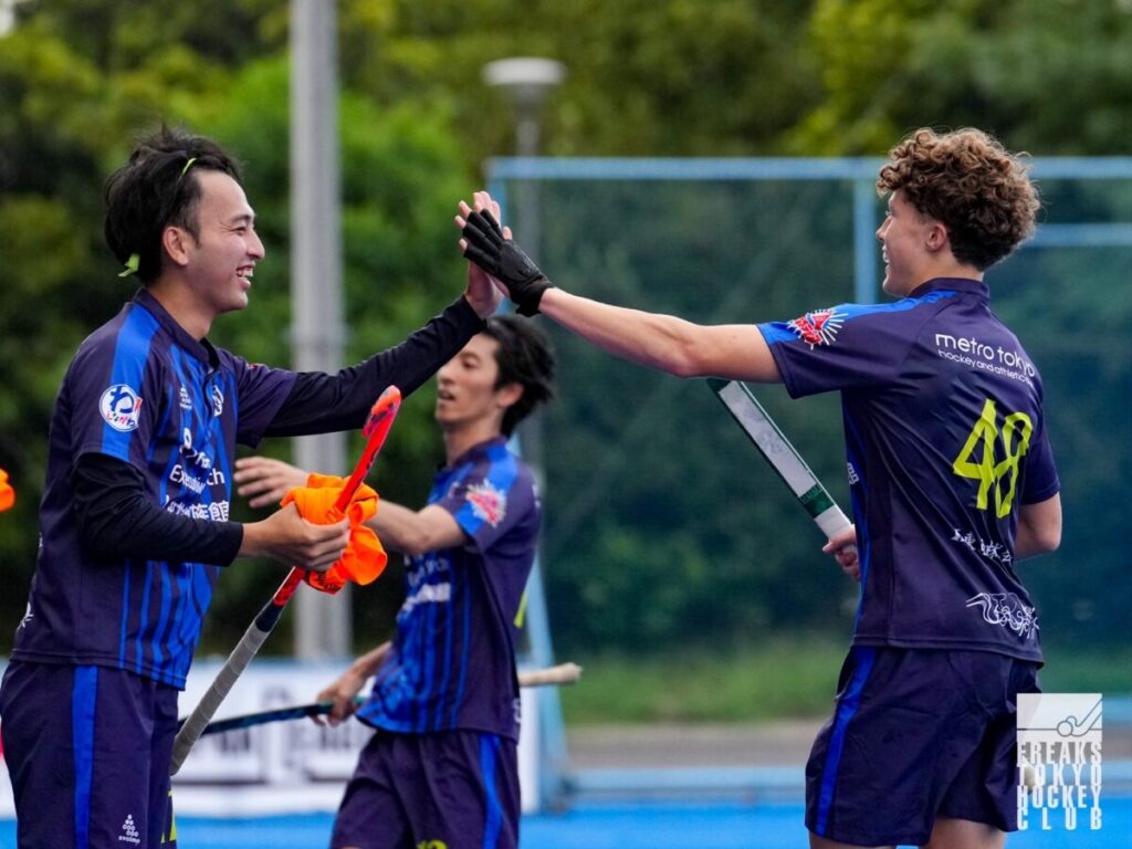一方のフリークスも26分、右サイドの23mライン付近から#3入江がドリブルで回り込みサークルイン。パスを繋いで最後はゴール左で待ち構えた#8玉坂が、左上にシュートを決めて1点を返し、1-3とする。