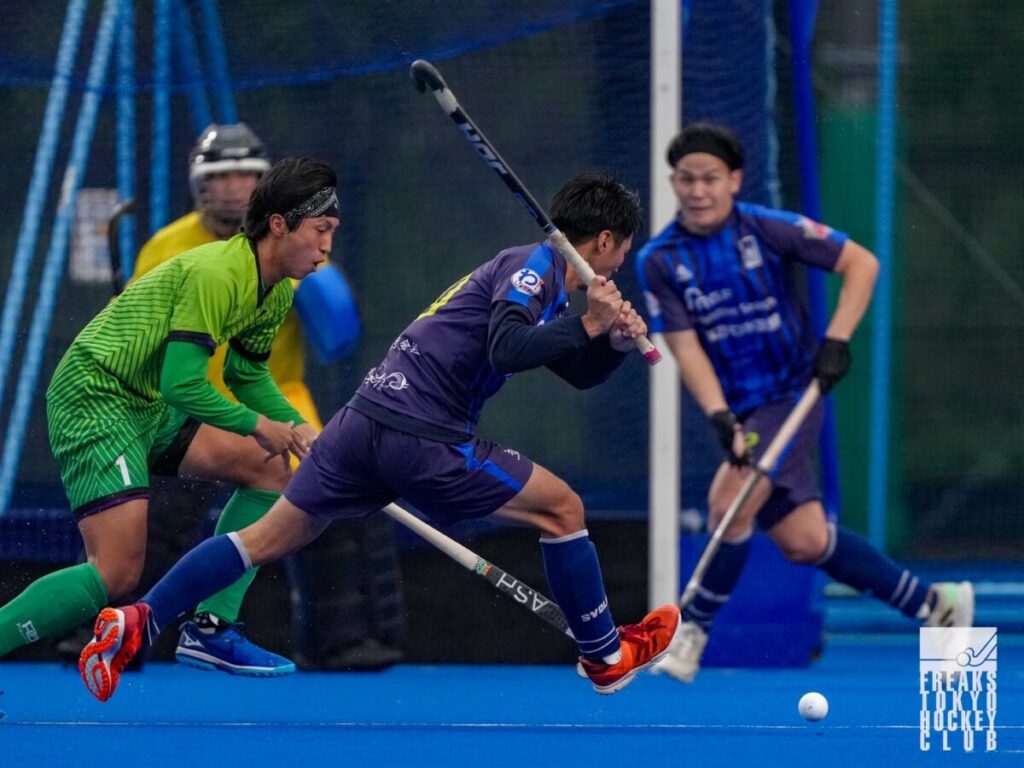 第1Q終盤の15分、フリークスが#10 高橋の打ち込みに#24 村山が巧みにタッチで合わせ先制。フリークスが1-0とリードして第1Qを終える。